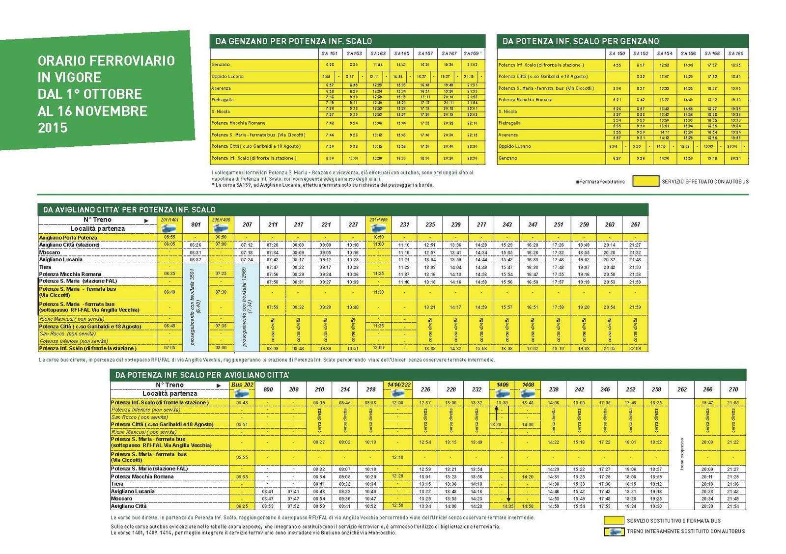 Orario in vigore dal 1° ottobre al 16 novembre 2015