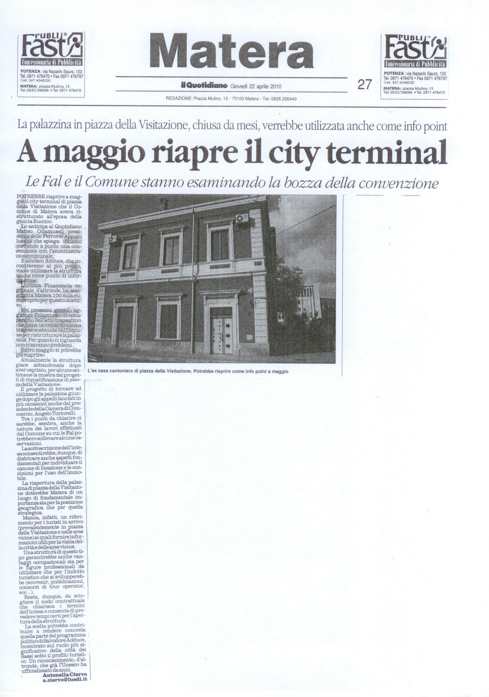 A maggio riapre il city terminal