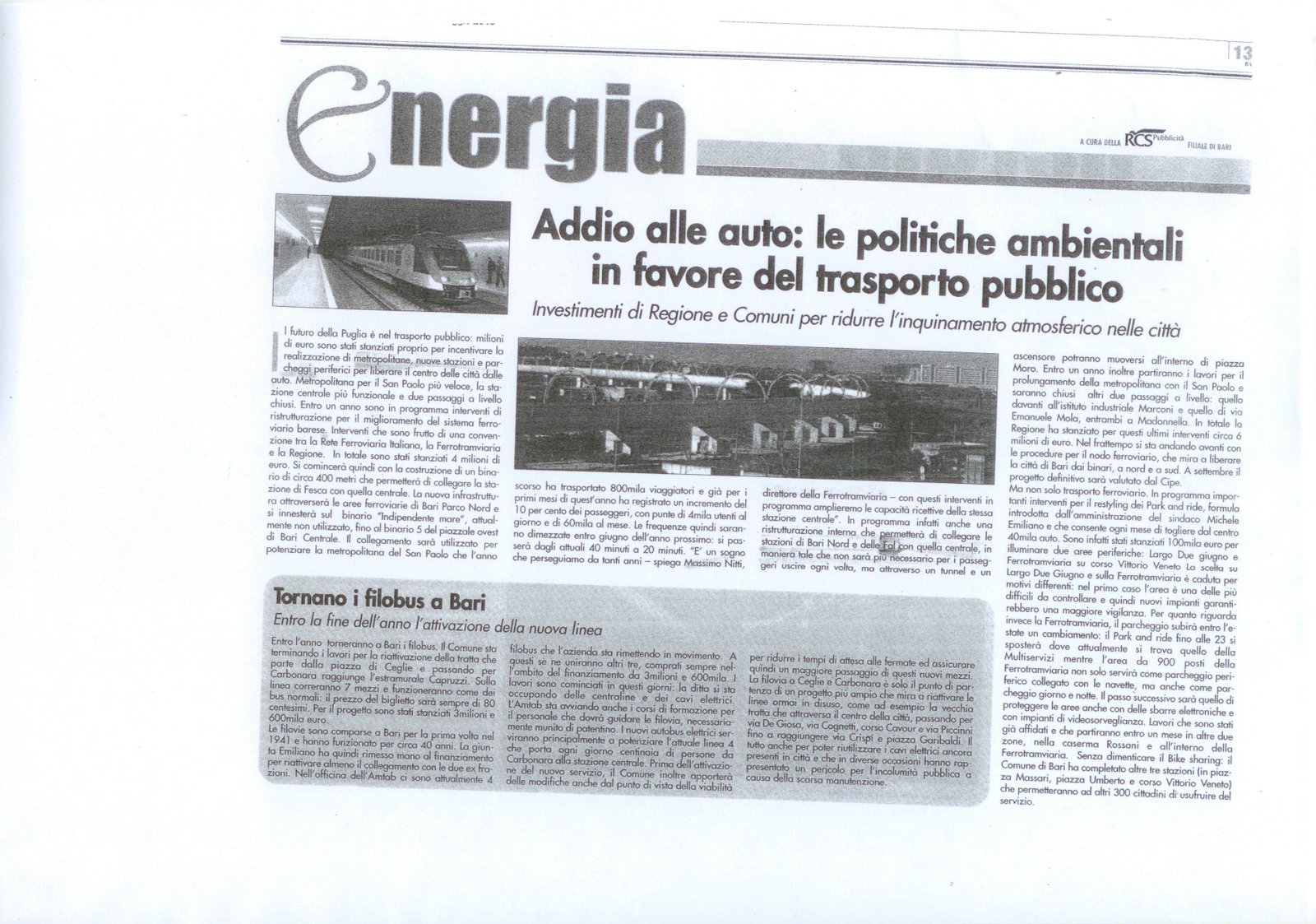 Addio alle auto: le politiche ambientali in favore del trasporto pubblico Pubblicato il 19/05/2010 Fonte : Corriere del Mezzogiorno Allegati: Scarica articolo originale Dimensioni: 910 KB