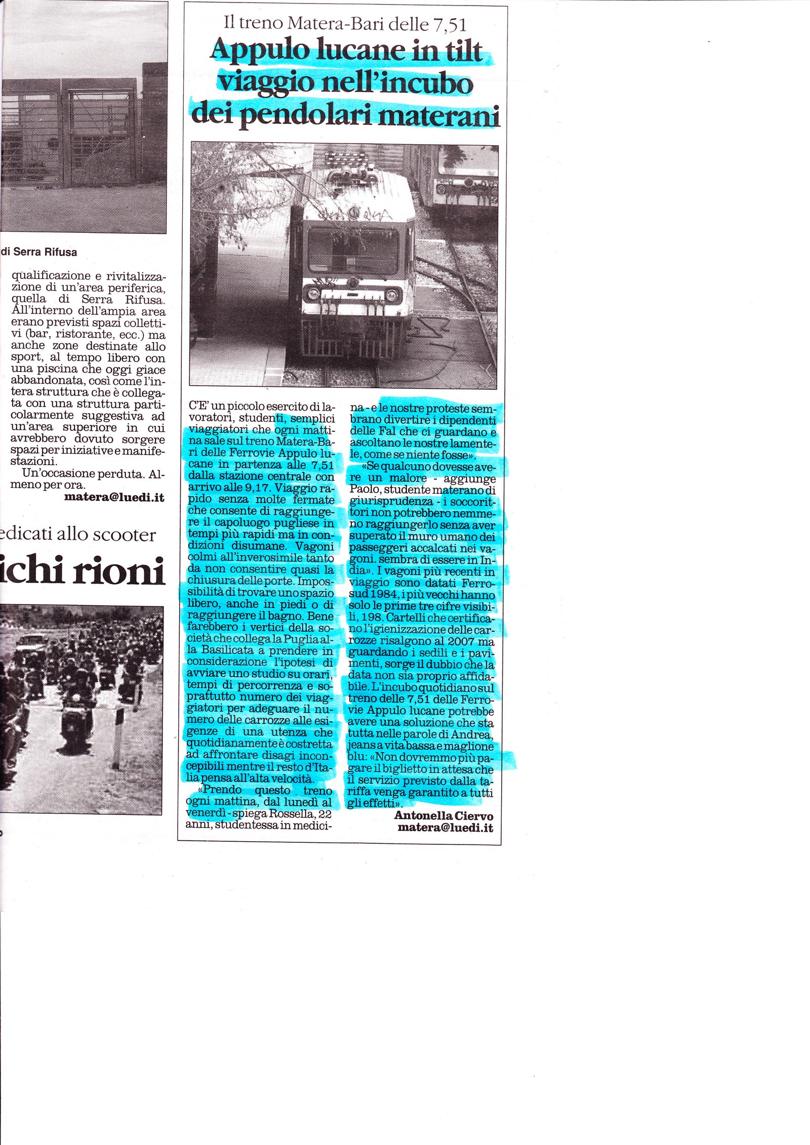 Appulo lucane in tilt viaggio nell’incubo dei pendolari materani Pubblicato il 18/04/2009 Fonte : il Quotidiano Allegati: Scarica articolo originale Dimensioni: 3 MB
