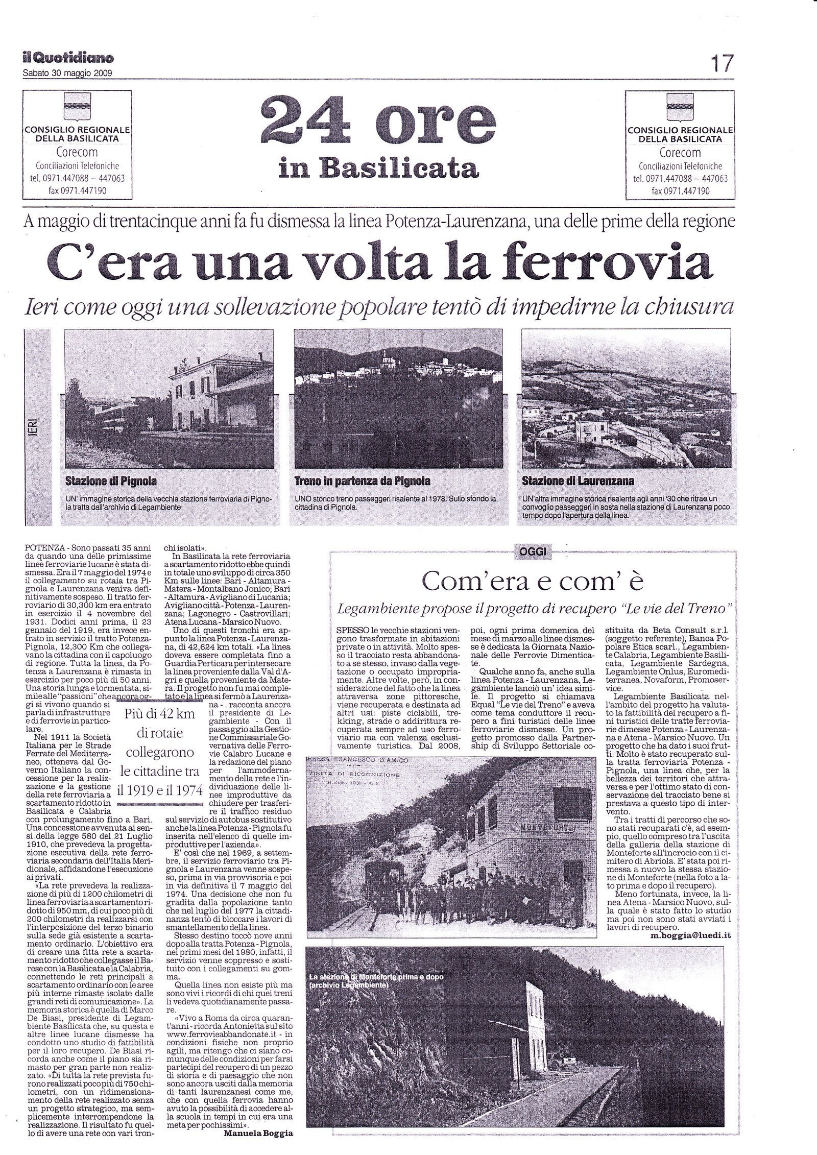 C’era una volta la ferrovia Pubblicato il 29/05/2009 Fonte : il Quotidiano Allegati: Scarica articolo originale Dimensioni: 5 MB
