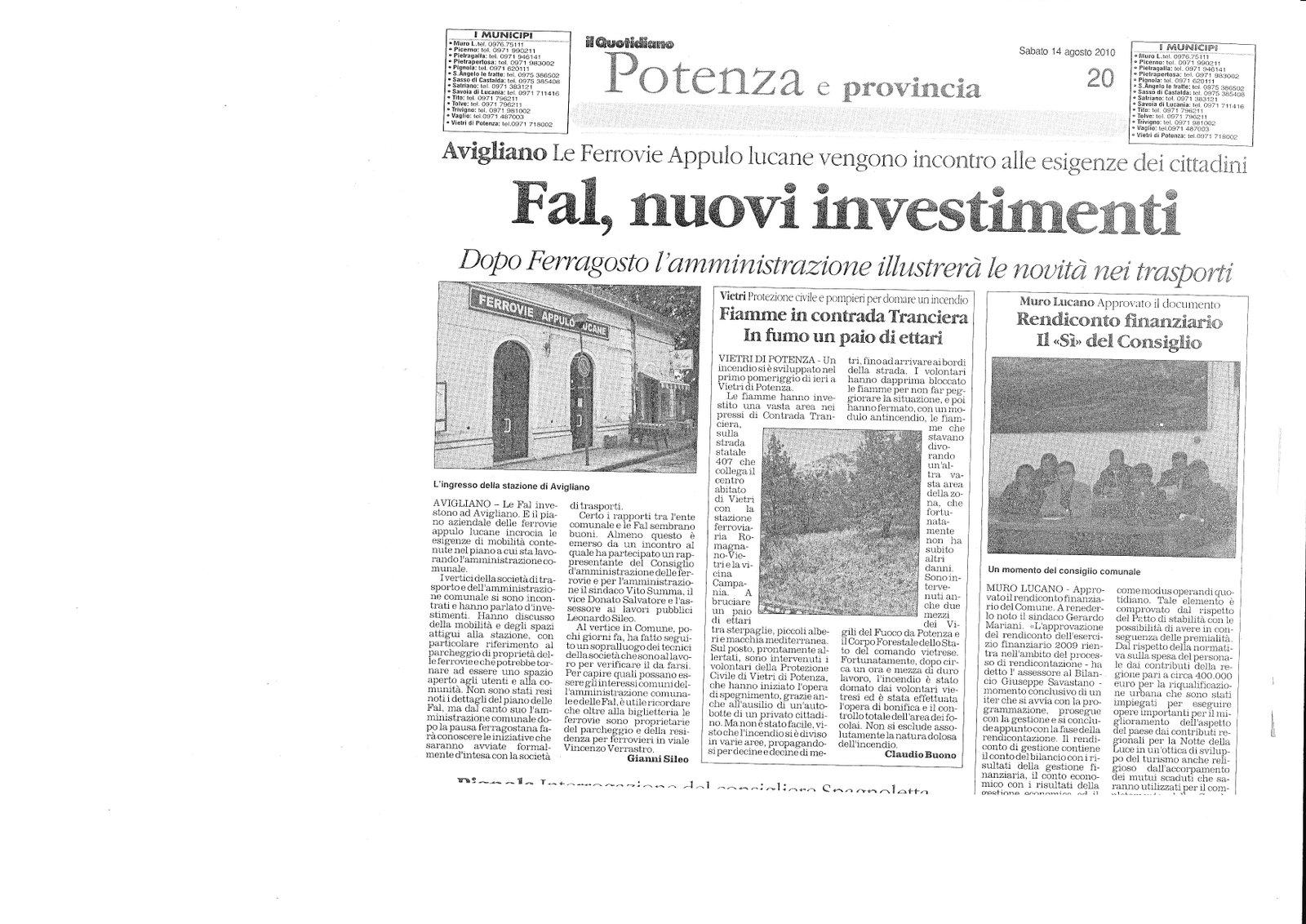 Fal, nuovi investimenti Pubblicato il 14/08/2010 Fonte : il Quotidiano – Basilicata Allegati: Scarica articolo originale Dimensioni: 2 MB