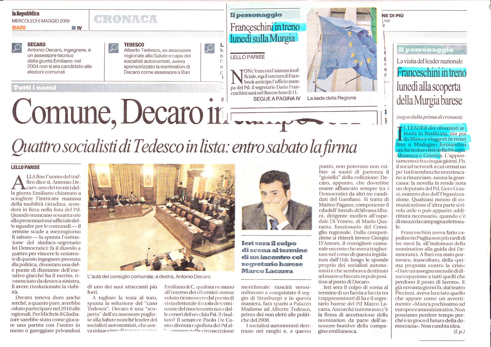 Franceschini in treno lunedì alla scoperta della Murgia barese Pubblicato il 05/05/2009 Fonte : La Repubblica Bari Allegati: Scarica articolo originale Dimensioni: 4 MB