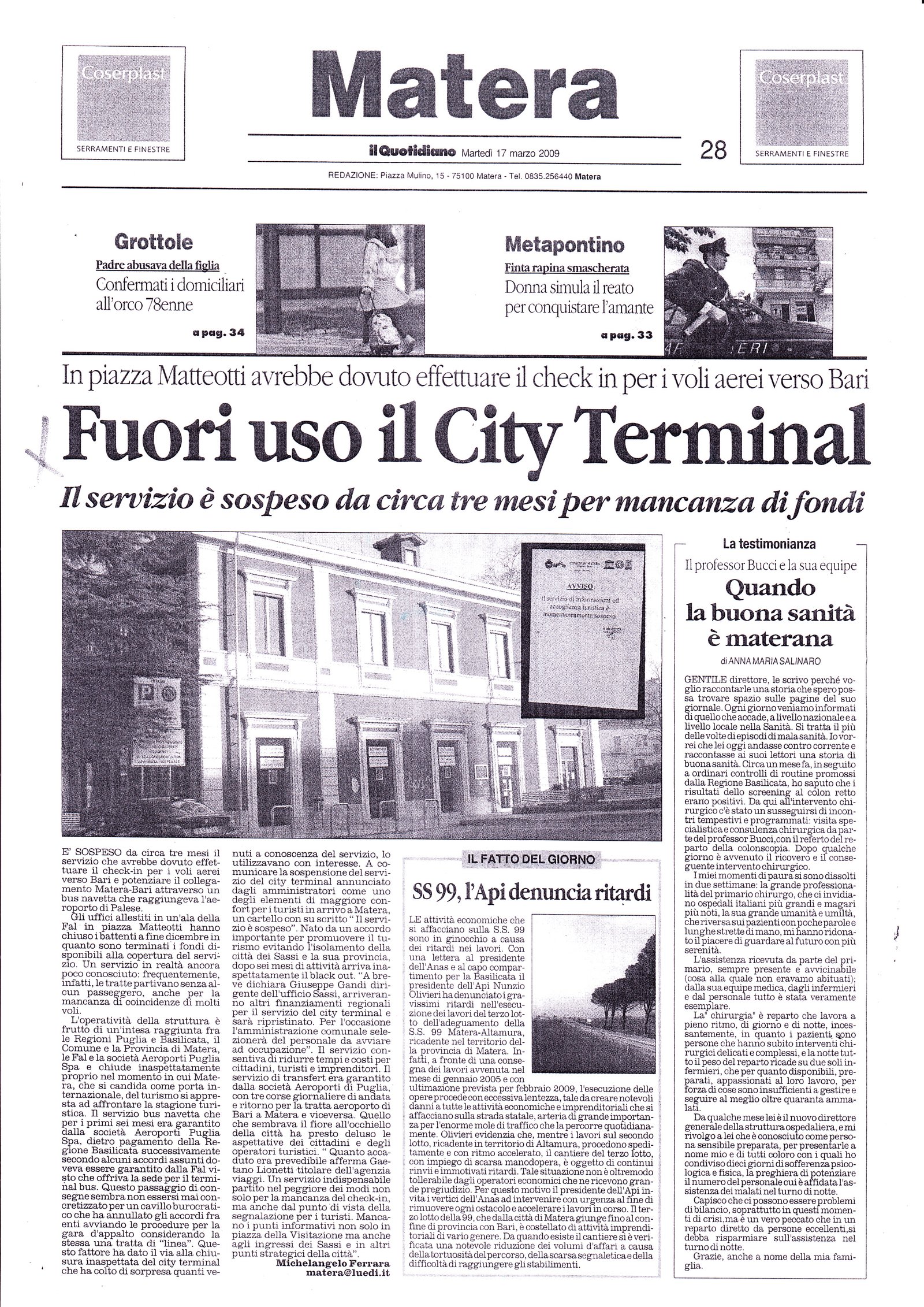 Fuori uso il City Terminal Pubblicato il 22/03/2009 Fonte : il Quotidiano – Matera Allegati: Dimensioni: 5 MB