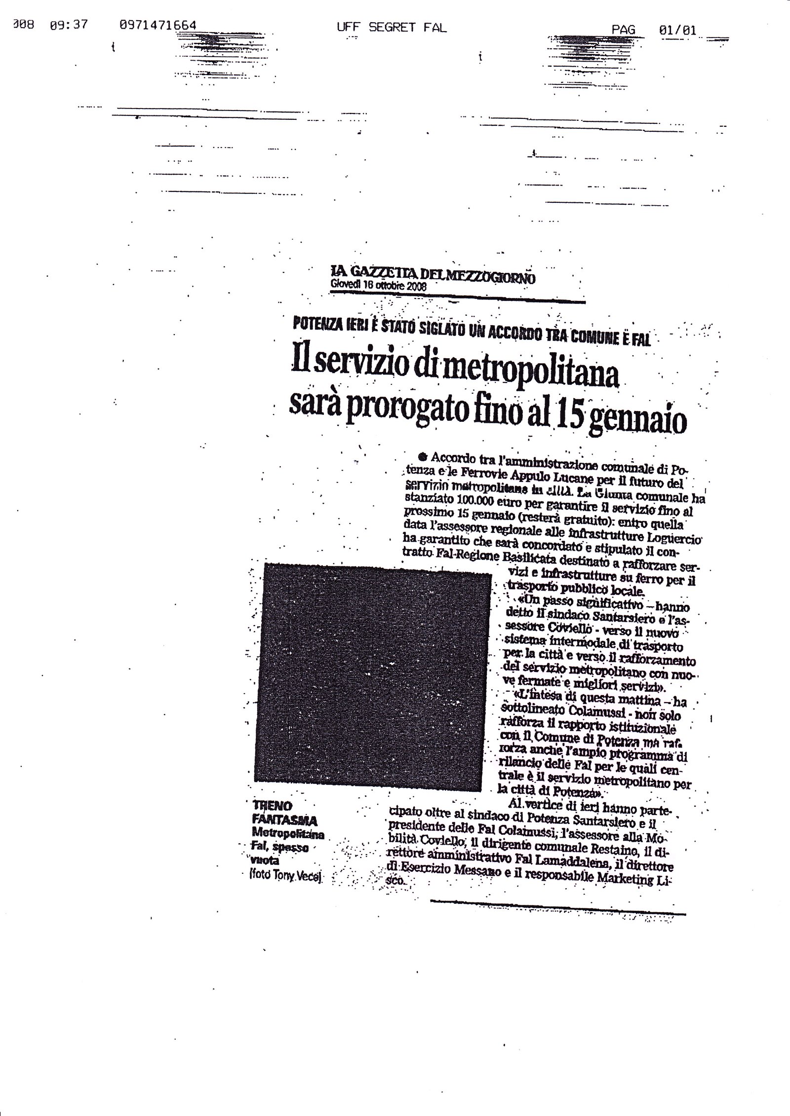Il servizio di metropolitana sarà prorogato fino al 15 gennaio Pubblicato il 16/10/2008 fonte : La Gazzetta del Mezzogiorno – Potenza Allegati: Scarica articolo originale Dimensioni: 2 MB