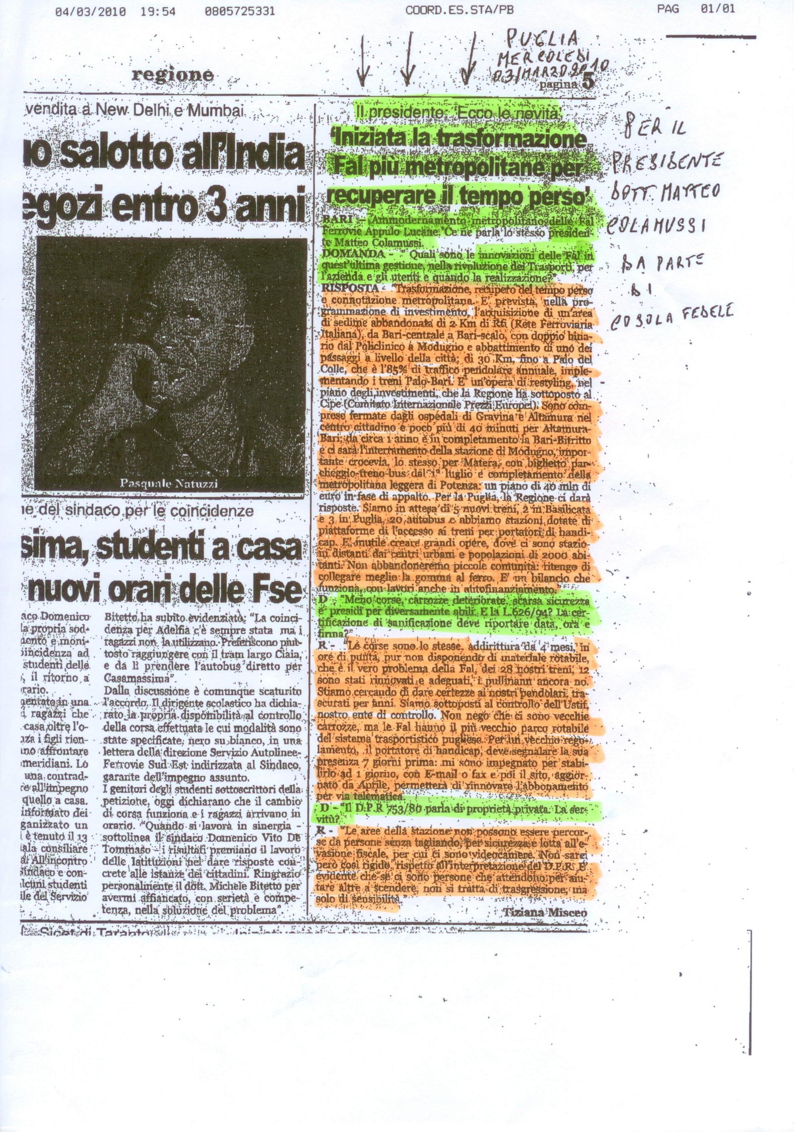 Iniziata la trasformazione Fal più metropolitane per recuperare il tempo perso Pubblicato il 04/03/2010 Fonte : Puglia Allegati: Scarica articolo originale Dimensioni: 1,013 KB