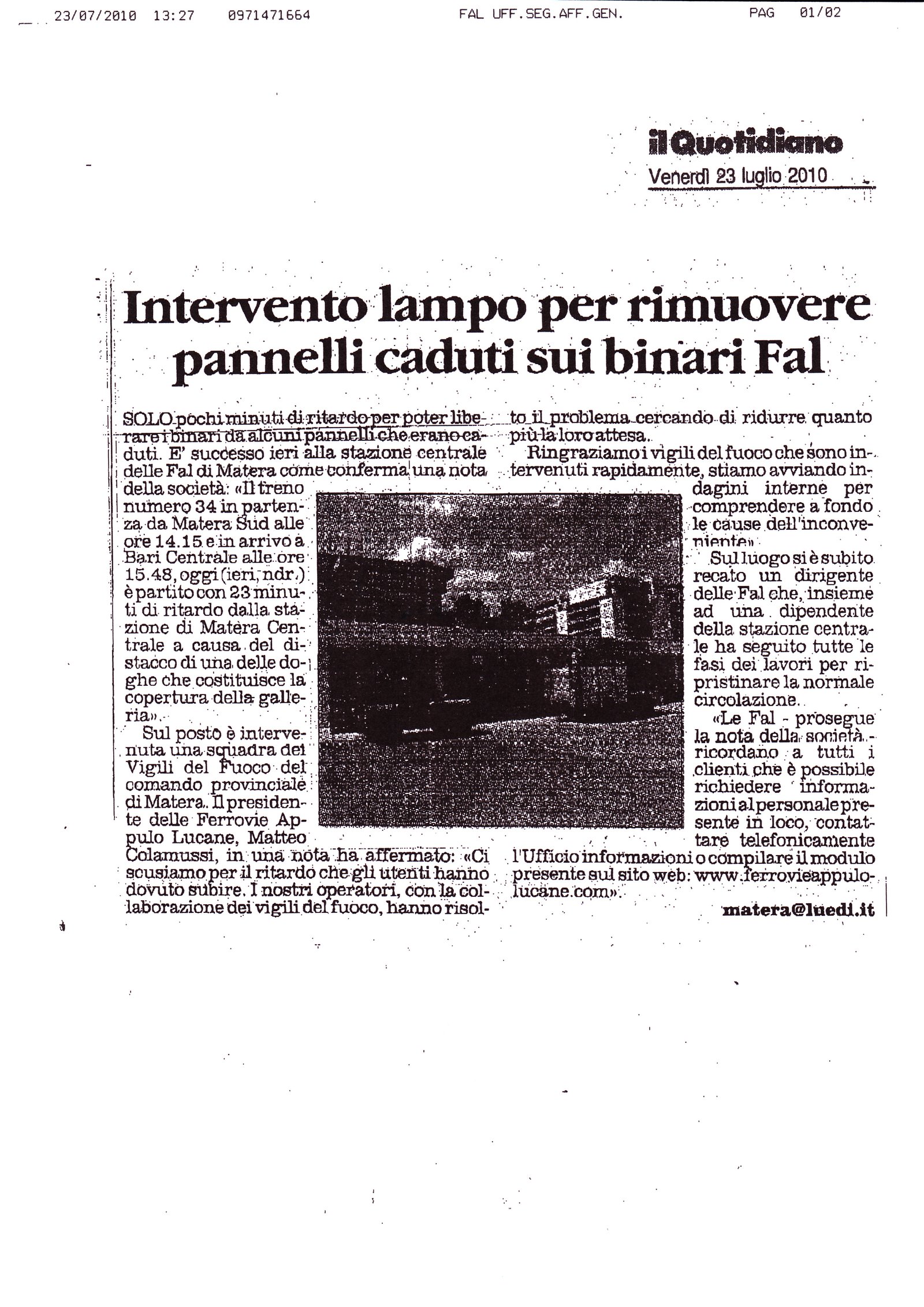 Intervento lampo per rimuovere pannelli caduti sui binari Fal