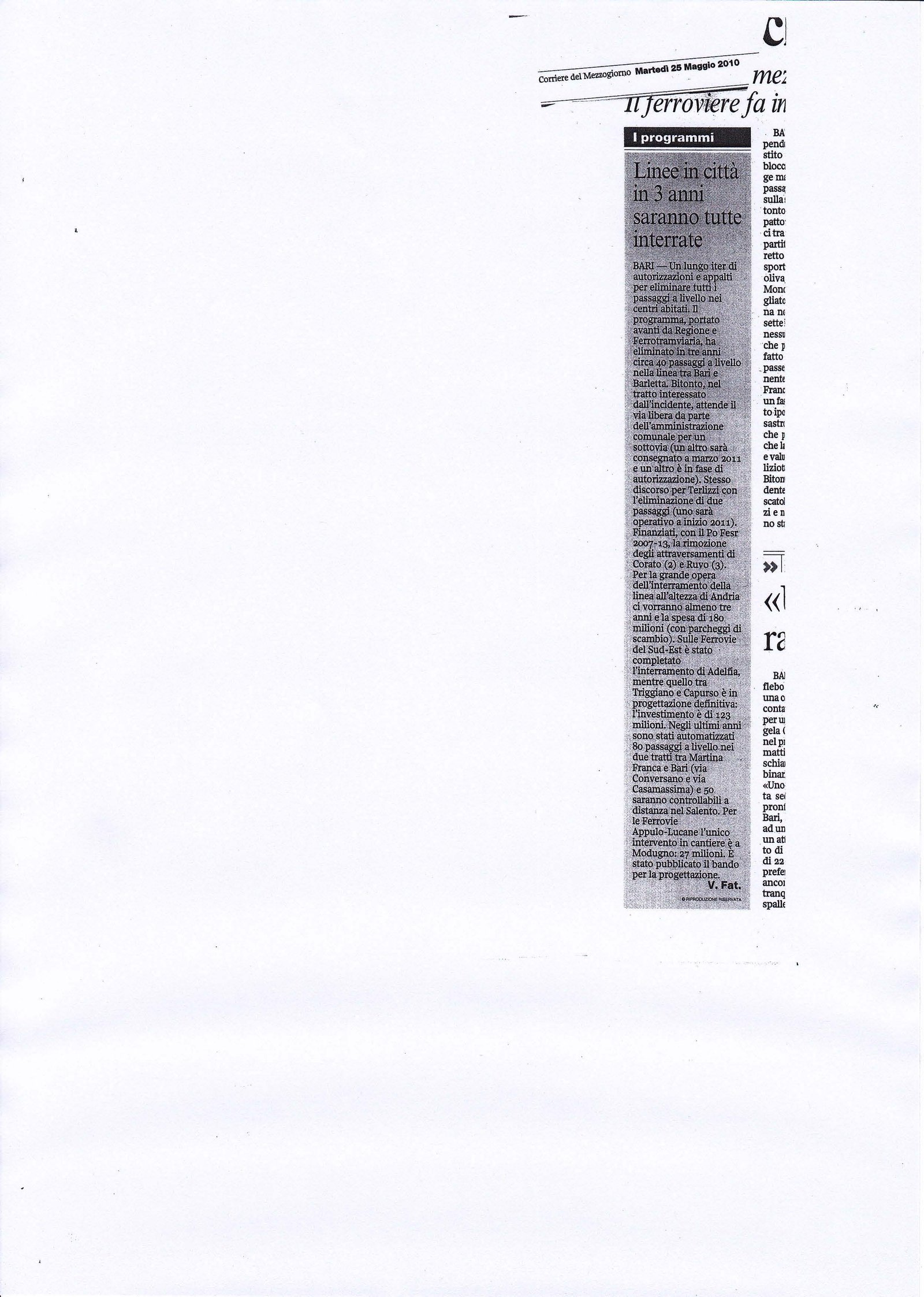 Linee in città in 3 anni saranno tutte interrate Pubblicato il 25/05/2010 Fonte :Corriere del Mezzogiorno Allegati: Scarica articolo originale Dimensioni: 496 KB