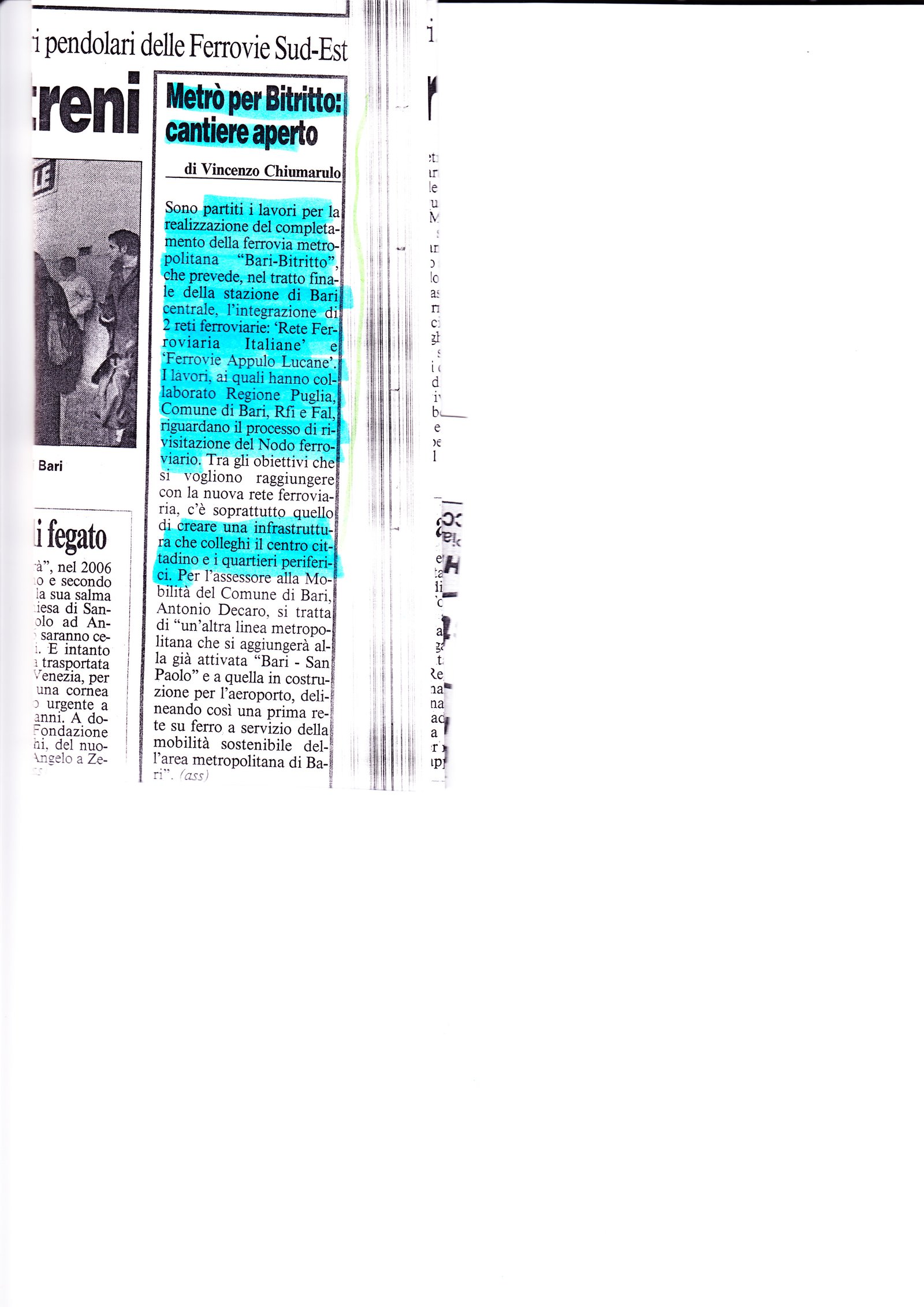 Metrò per Bitritto: cantiere aperto Pubblicato il 21/04/2009 Fonte : Leggo Allegati: Scarica articolo originale Dimensioni: 1 MB