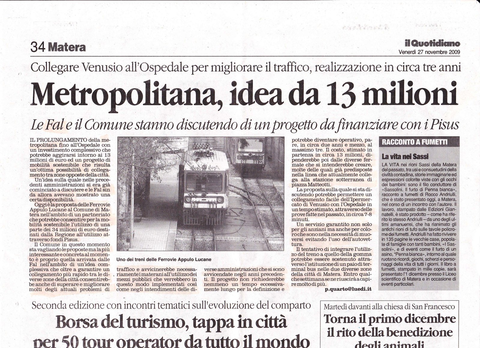Metropolitana, idea da 13 milioni Pubblicato il 26/11/2009 Fonte : il Quotidiano Allegati: Scarica articolo originale Dimensioni: 1 MB