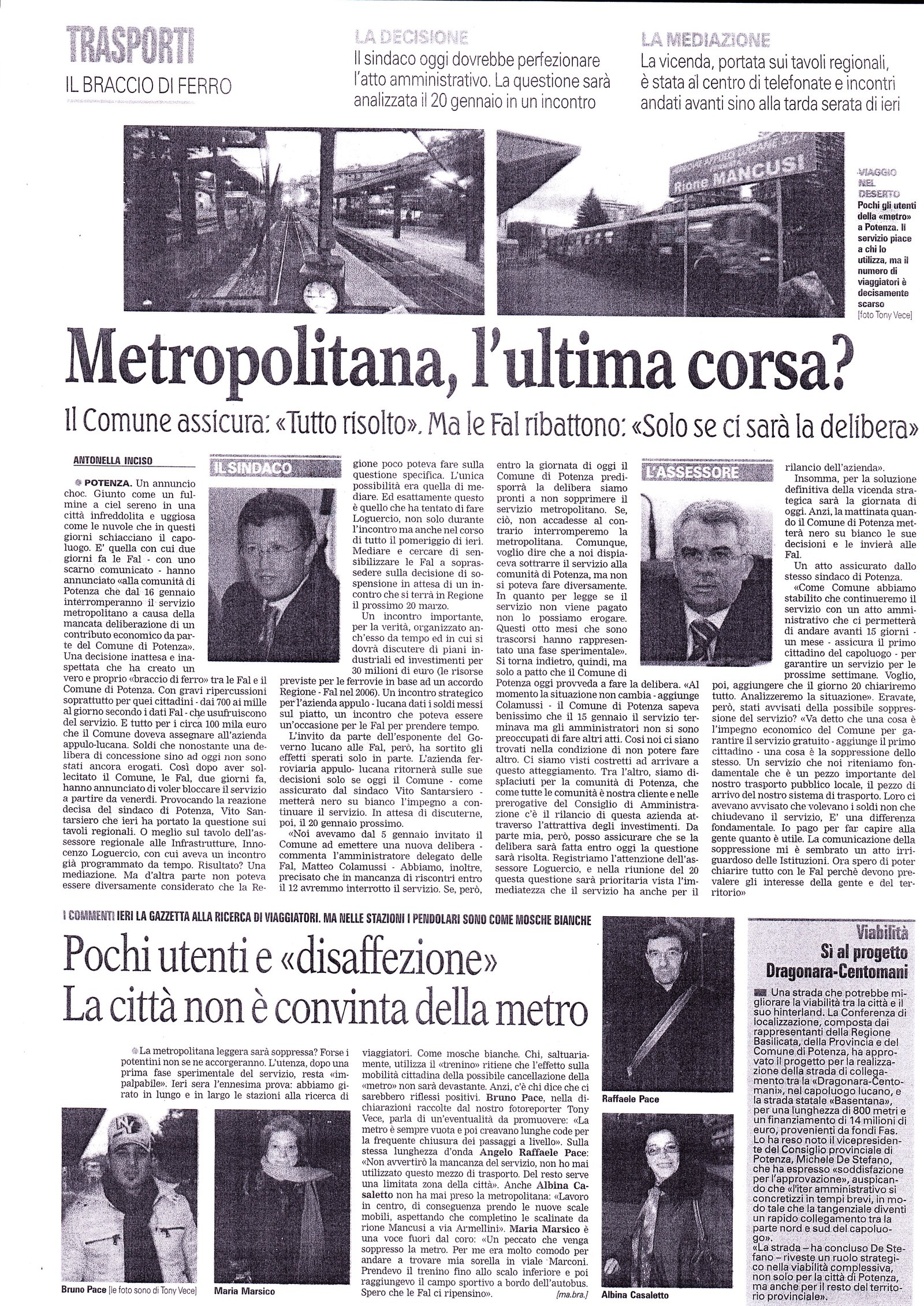 Metropolitana, l’ultima corsa? Pubblicato il 14/01/2009 Fonte : La Gazzetta del Mezzogiorno Allegati: Scarica articolo originale Dimensioni: 5 MB