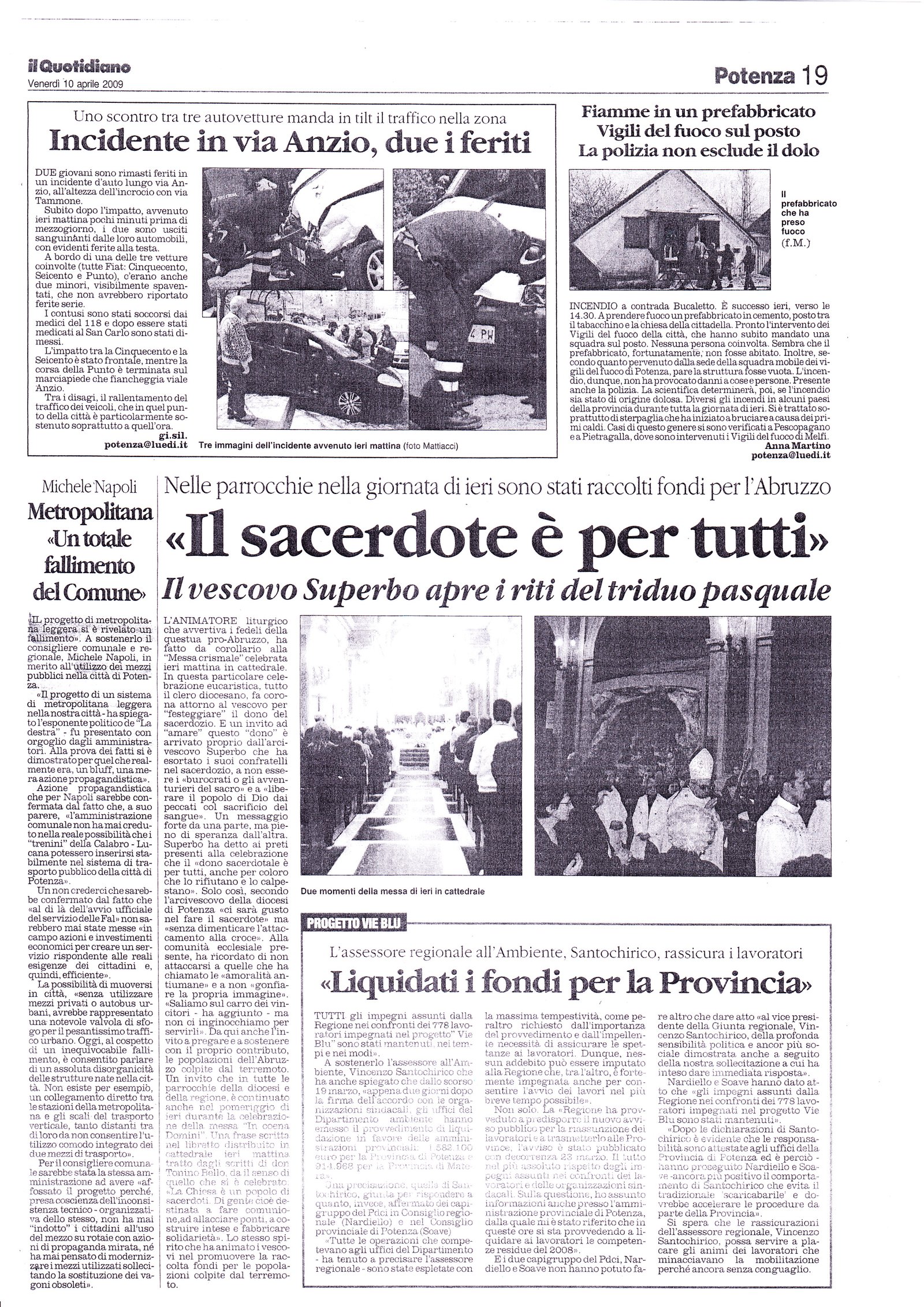 Metropolitana Un totale fallimento del Comune Pubblicato il 09/04/2009 Fonte : il Quotidiano – Potenza Allegati: Scarica articolo originale Dimensioni: 5 MB