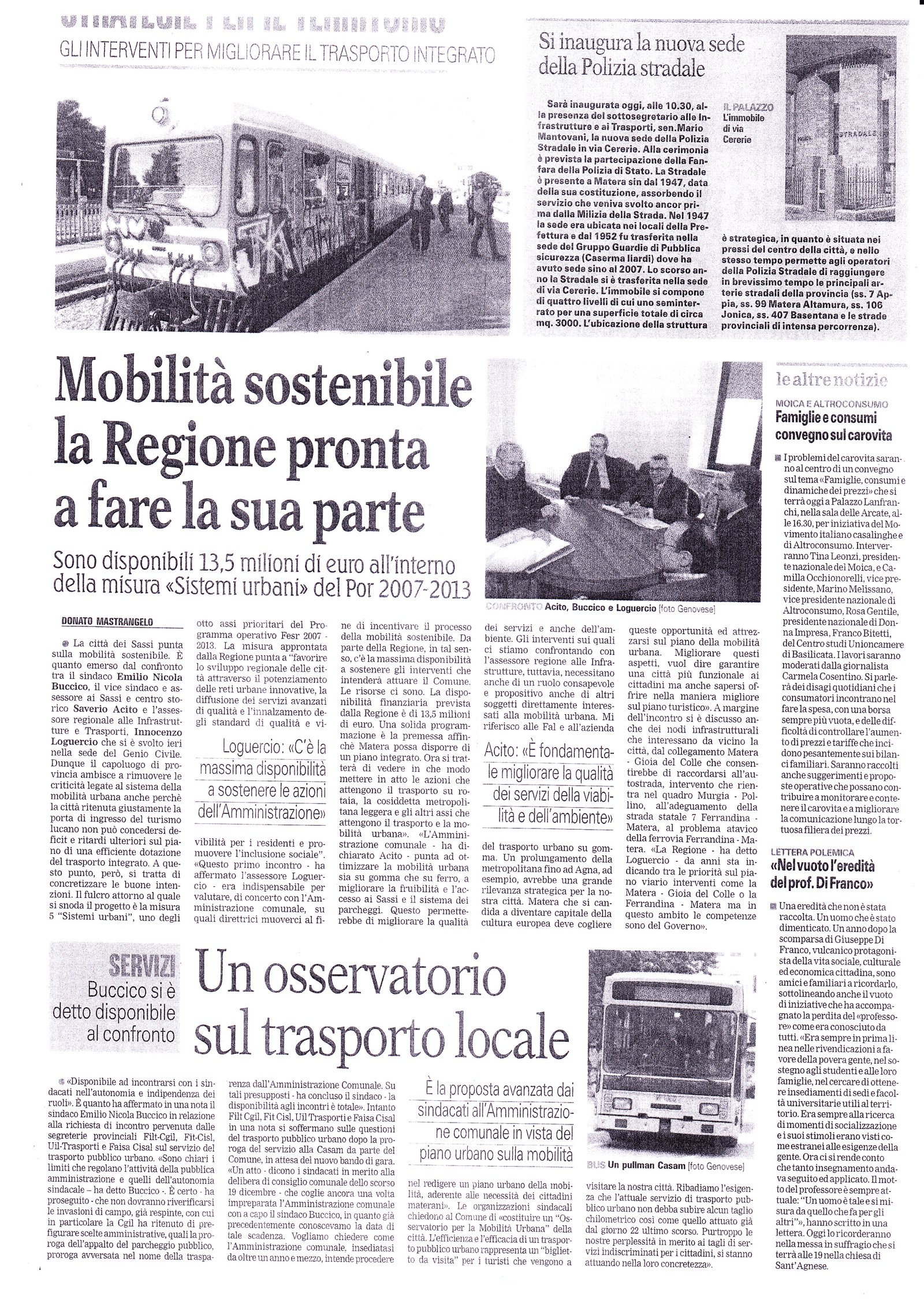 Mobilità sostenibile la Regione pronta a fare la sua parte Pubblicato il 23/01/2009 Fonte : La Gazzetta del Mezzogiorno Allegati: Scarica articolo originale Dimensioni: 5 MB