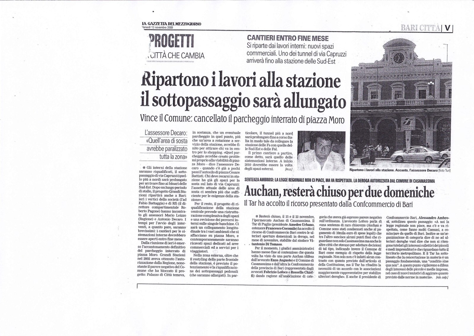 Ripartono i lavori alla stazione il sottopassaggio sarà allungato Pubblicato il 12/11/2009 Fonte : La Gazzetta del Mezzogiorno Allegati: Scarica articolo originale Dimensioni: 1 MB