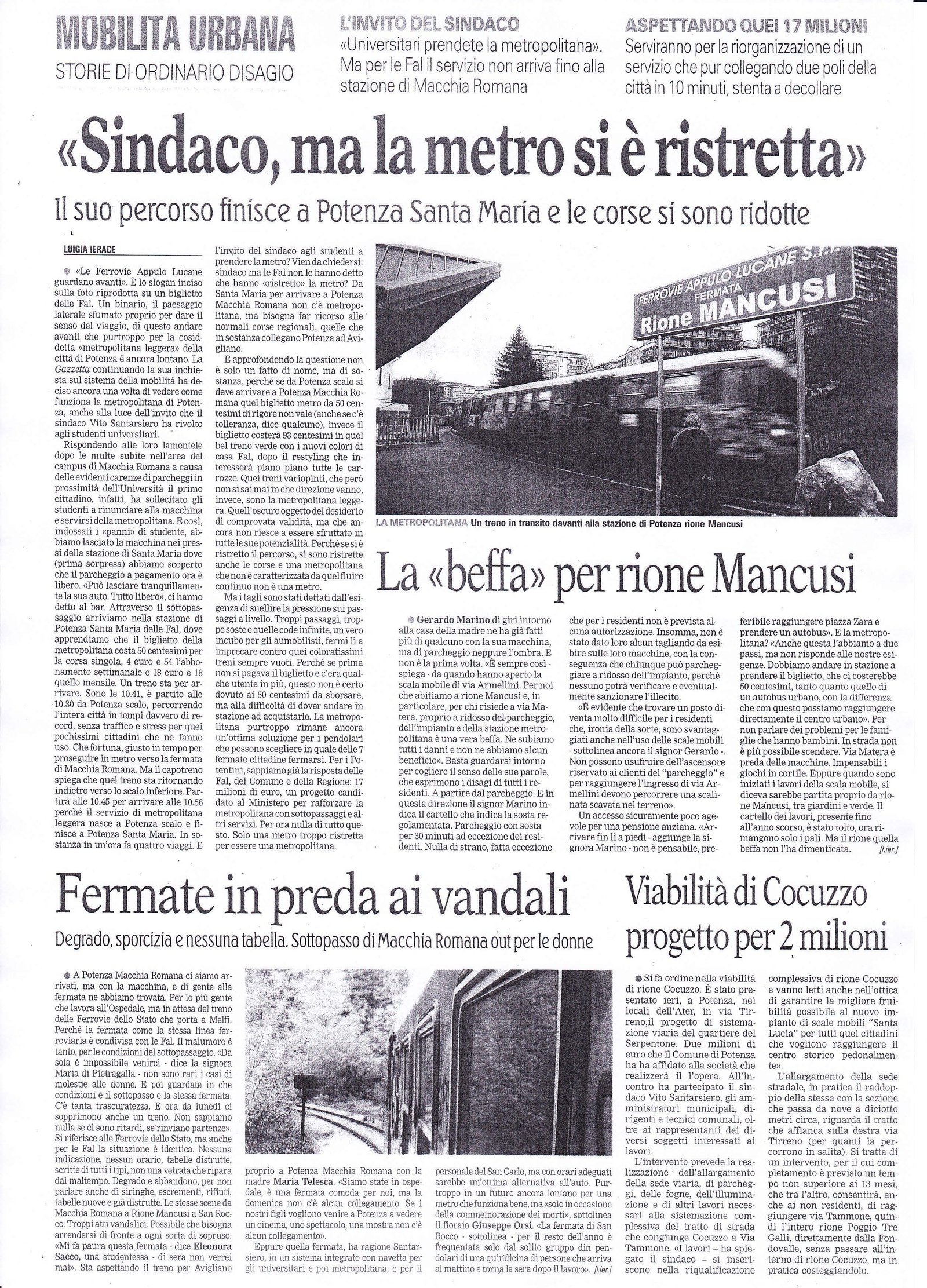 Sindaco, ma la metro si è ristretta Pubblicato il 06/06/2010 Fonte : La Gazzetta del Mezzogiorno Allegati: Scarica articolo originale Dimensioni: 2 MB