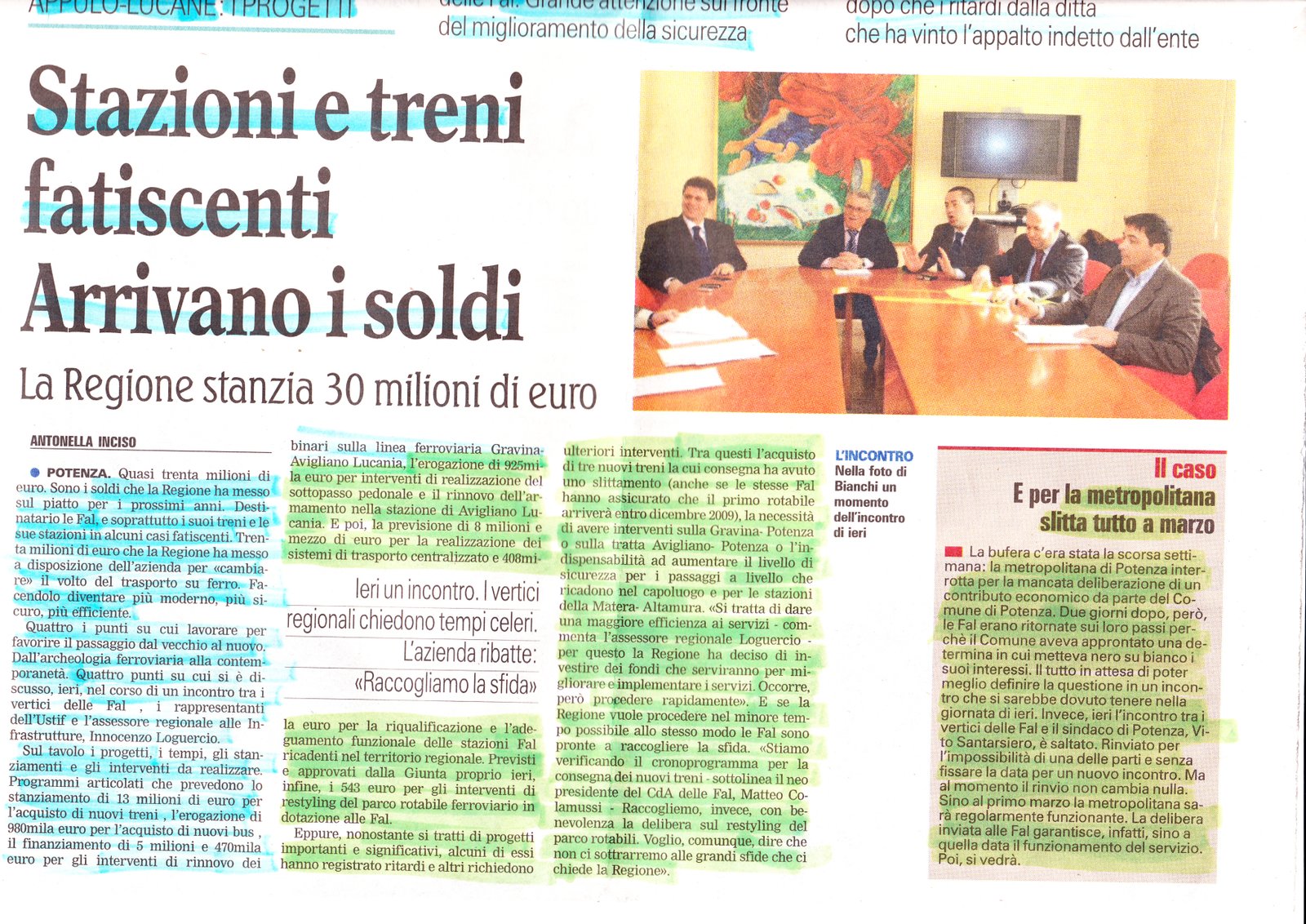 Stazioni e treni fatiscenti Arrivano i soldi Pubblicato il 20/01/2009 Fonte : La Gazzetta del Mezzogiorno Allegati: Scarica articolo originale Dimensioni: 4 MB