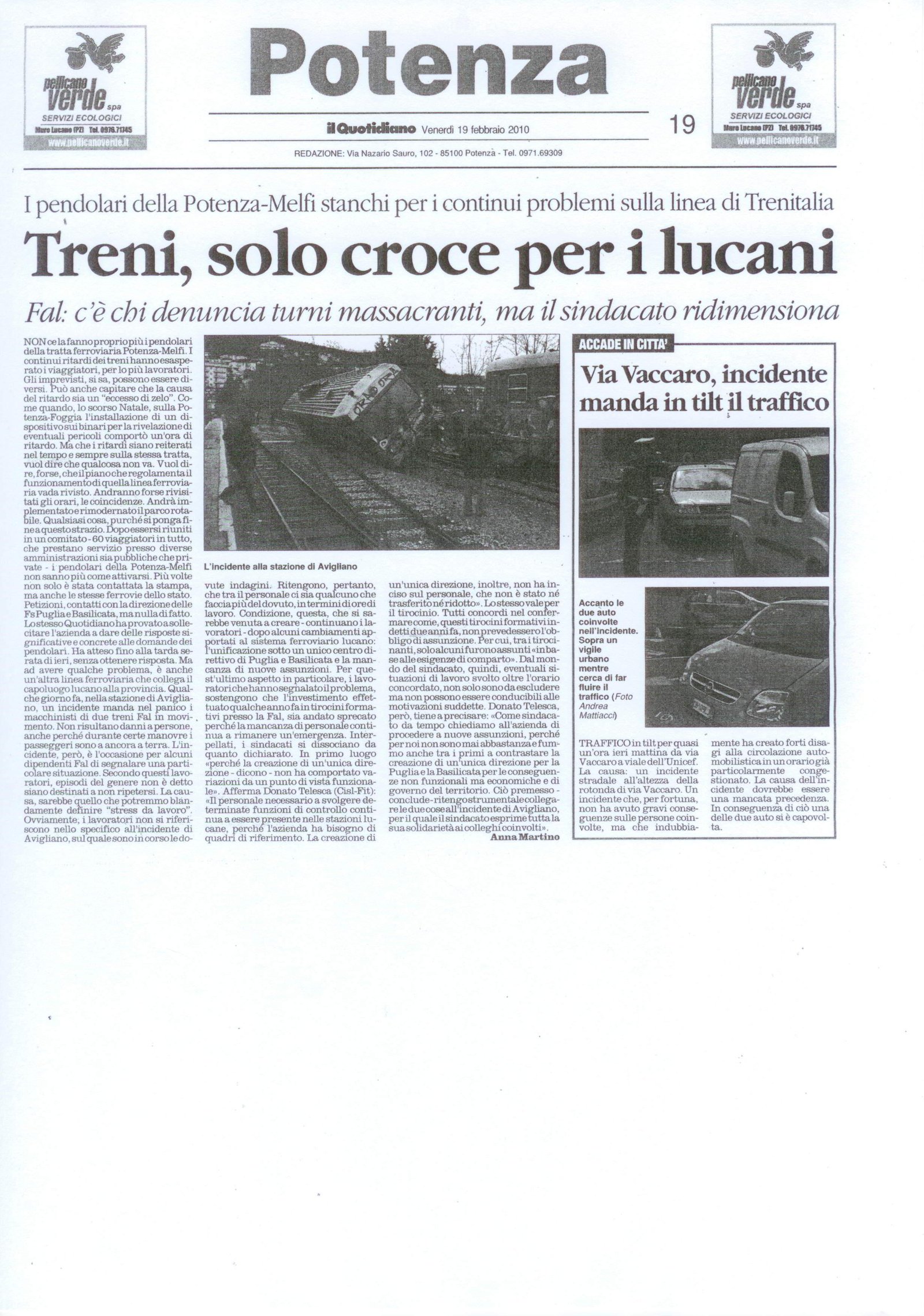 Treni, solo croce per i lucani Pubblicato il 19/02/2010 Fonte : il Quotidiano Allegati: Scarica articolo originale Dimensioni: 808 KB