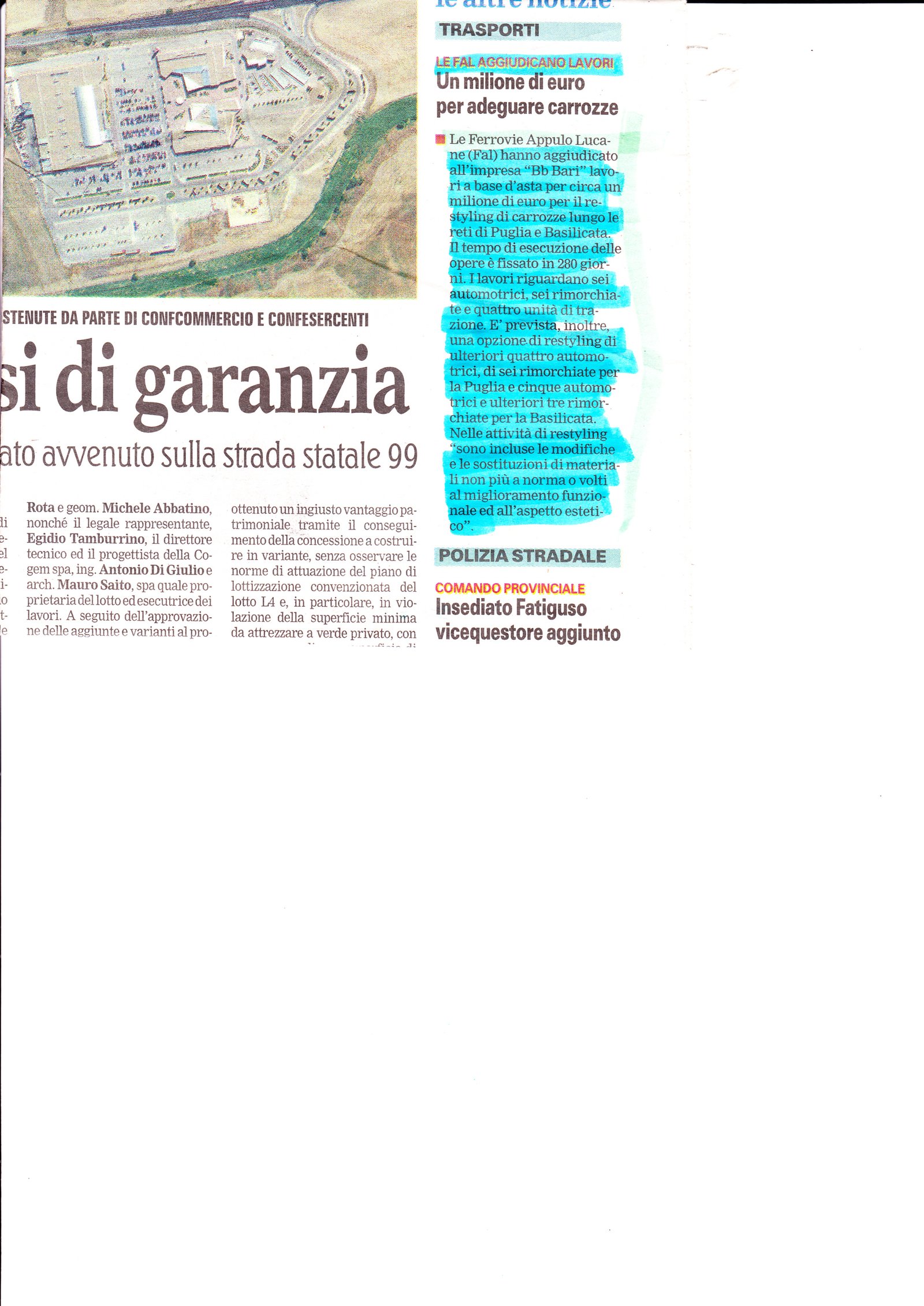 Un milione di euro per adeguare carrozze Pubblicato il 02/05/2009 Fonte : La Gazzetta del Mezzogiorno Allegati: Scarica articolo originale Dimensioni: 2 MB