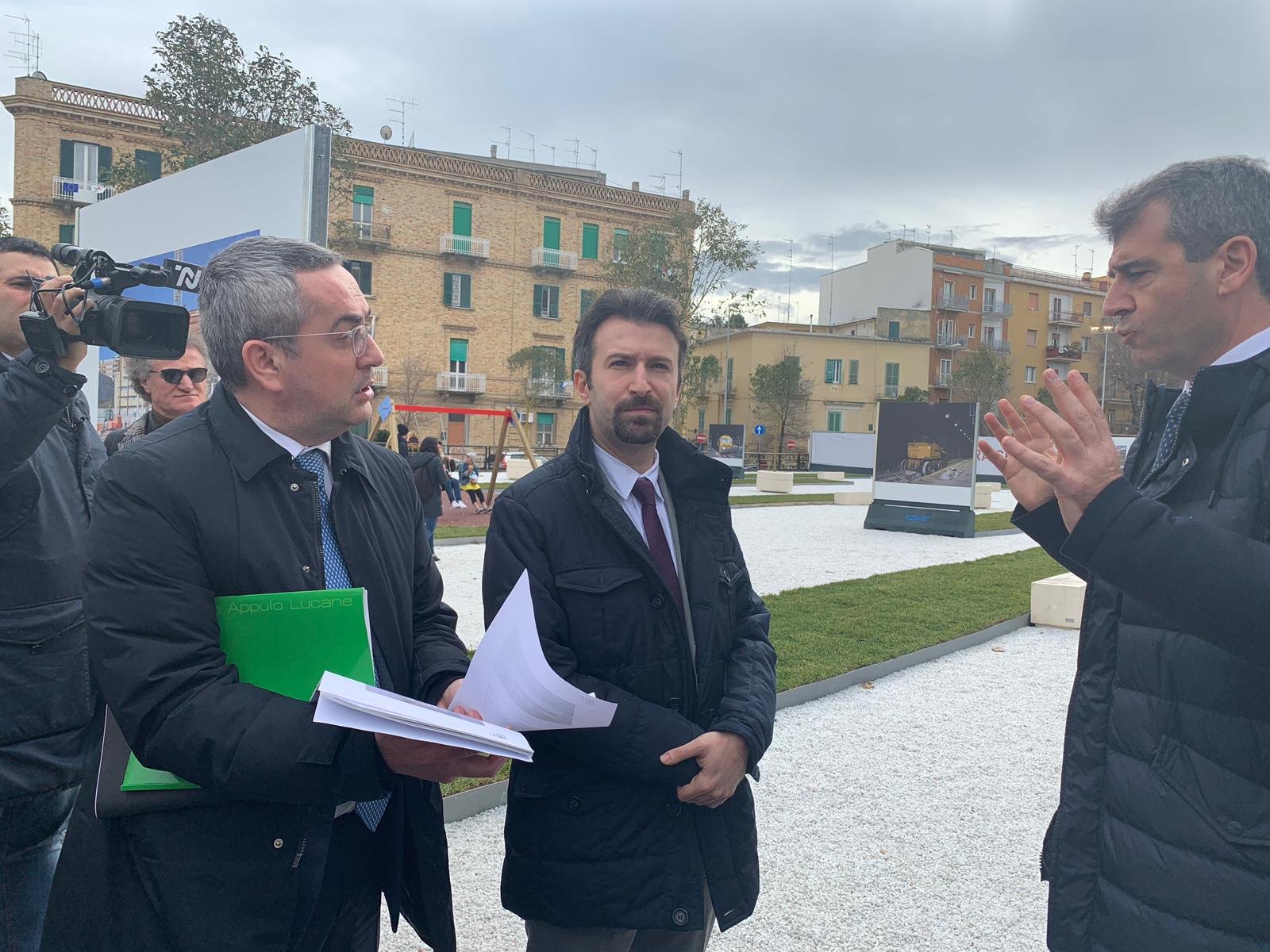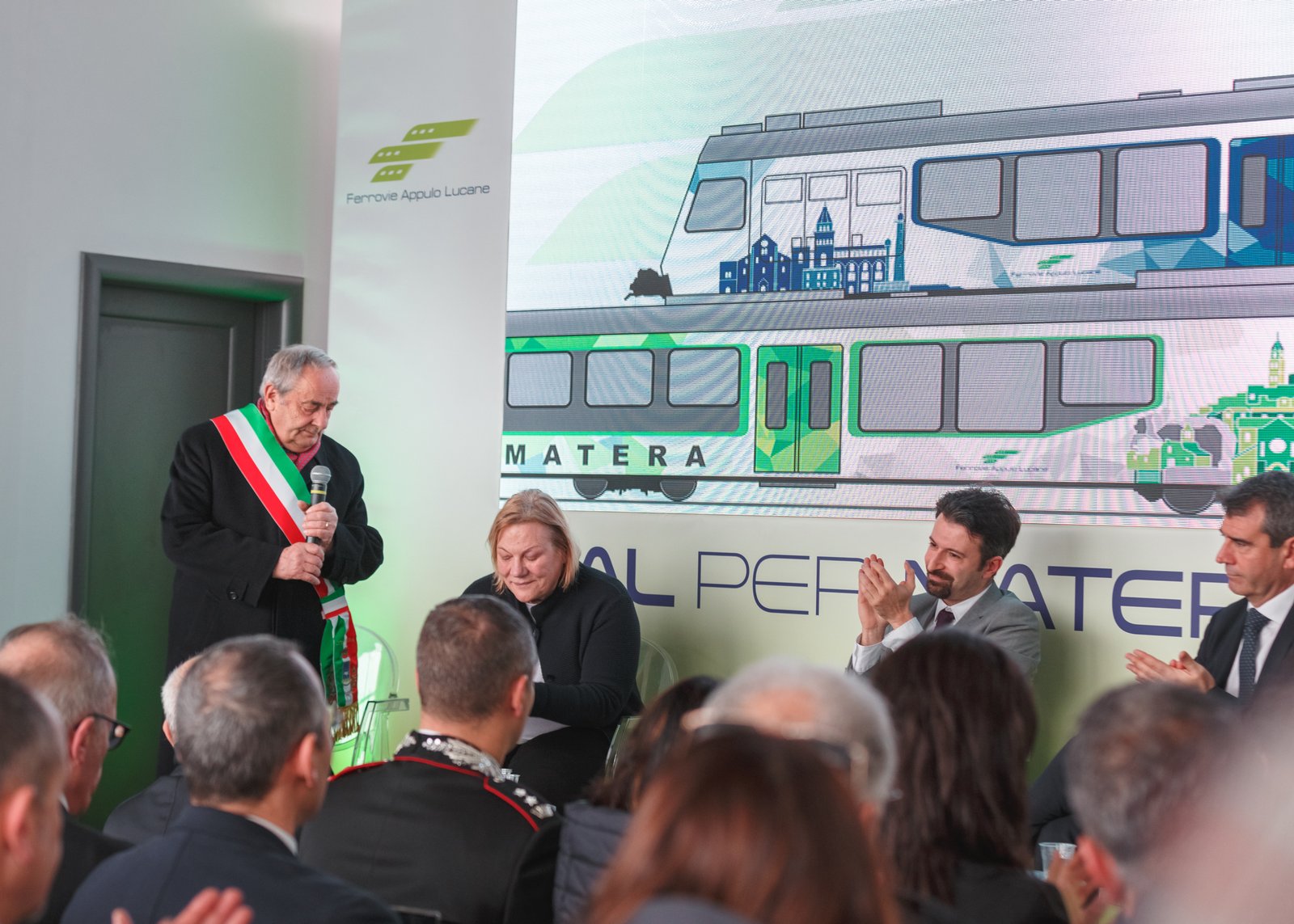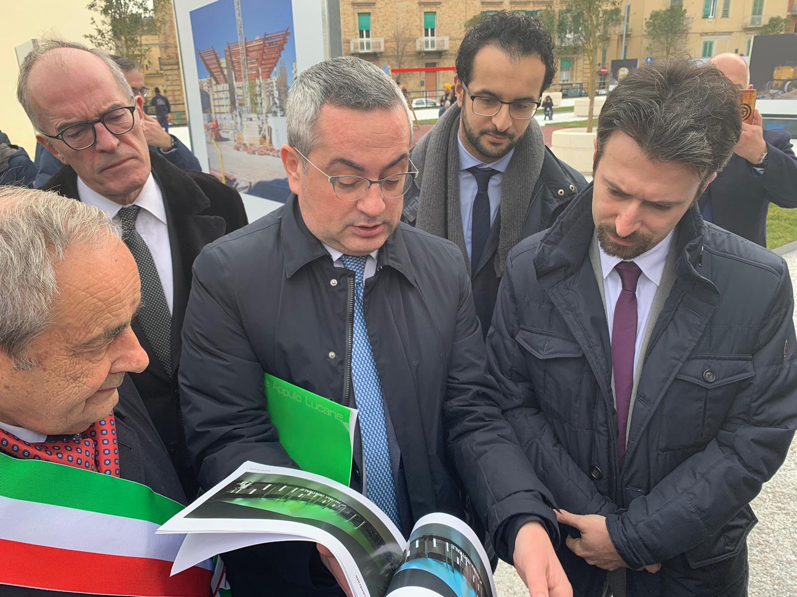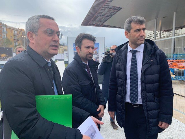 “Una sinergia virtuosa tra Istituzioni, una connessione di energie umane che in pochi mesi hanno consentito di realizzare progetti frutto di investimenti europei, nazionali, della Regione Basilicata e del Comune di Matera”. E’ il parere unanime di coloro che hanno preso parte questa mattina a Matera Serra Rifusa alla inaugurazione ufficiale per terminal parcheggio di interscambio realizzato da Fal (35 posti per bus turistici, 350 posti auto, fermate di treno e bus) e del nuovo treno Stadler acquistato da Fal con fondi propri rivenienti da utili di Bilancio, desinato alla tratta Bari – Matera e, per questo, ‘vestito’ con una speciale livrea disegnata da Giugiaro e raffigurante i simboli delle cIttà di Bari e Matera.