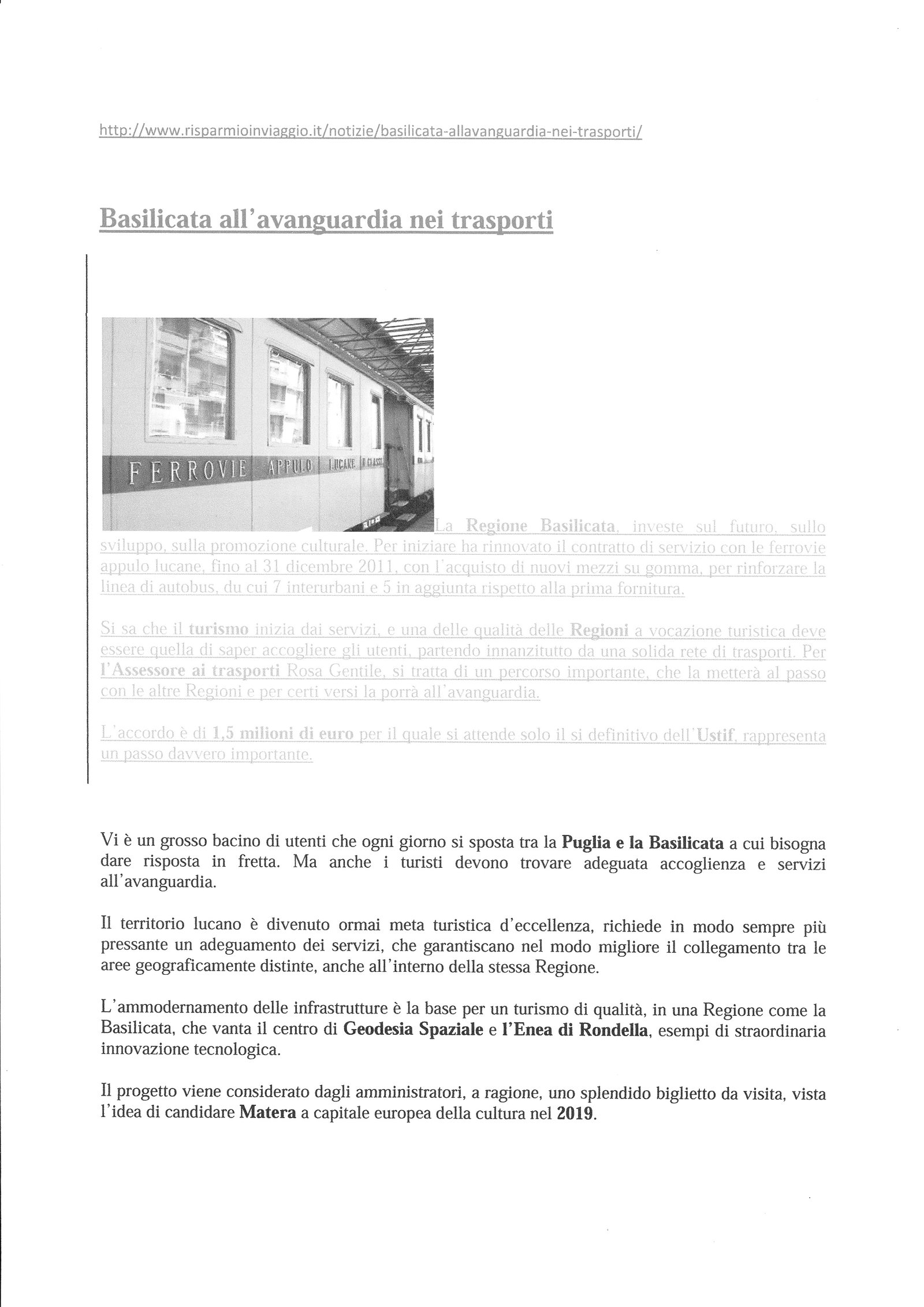 Basilicata all’avanguardia nei trasporti