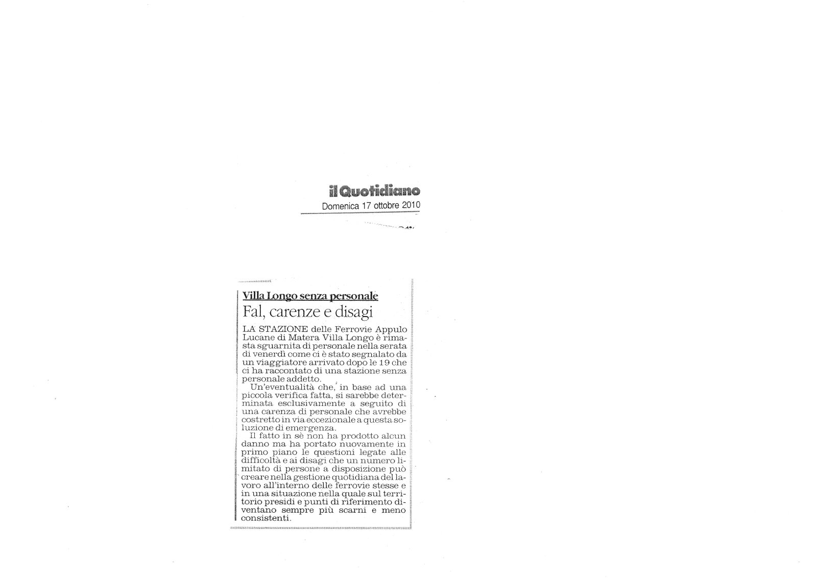 Fal, carenze e disagi Pubblicato il 17/10/2010 Fonte : il Quotidiano – Basilicata Allegati: Scarica articolo originale Dimensioni: 382 KB