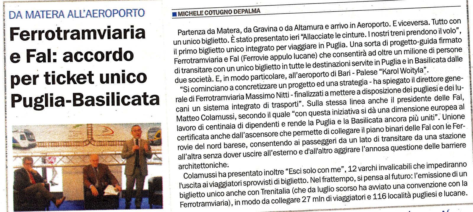 Ferrotramviaria e Fal: accordo per ticket unico Puglia – Basilicata