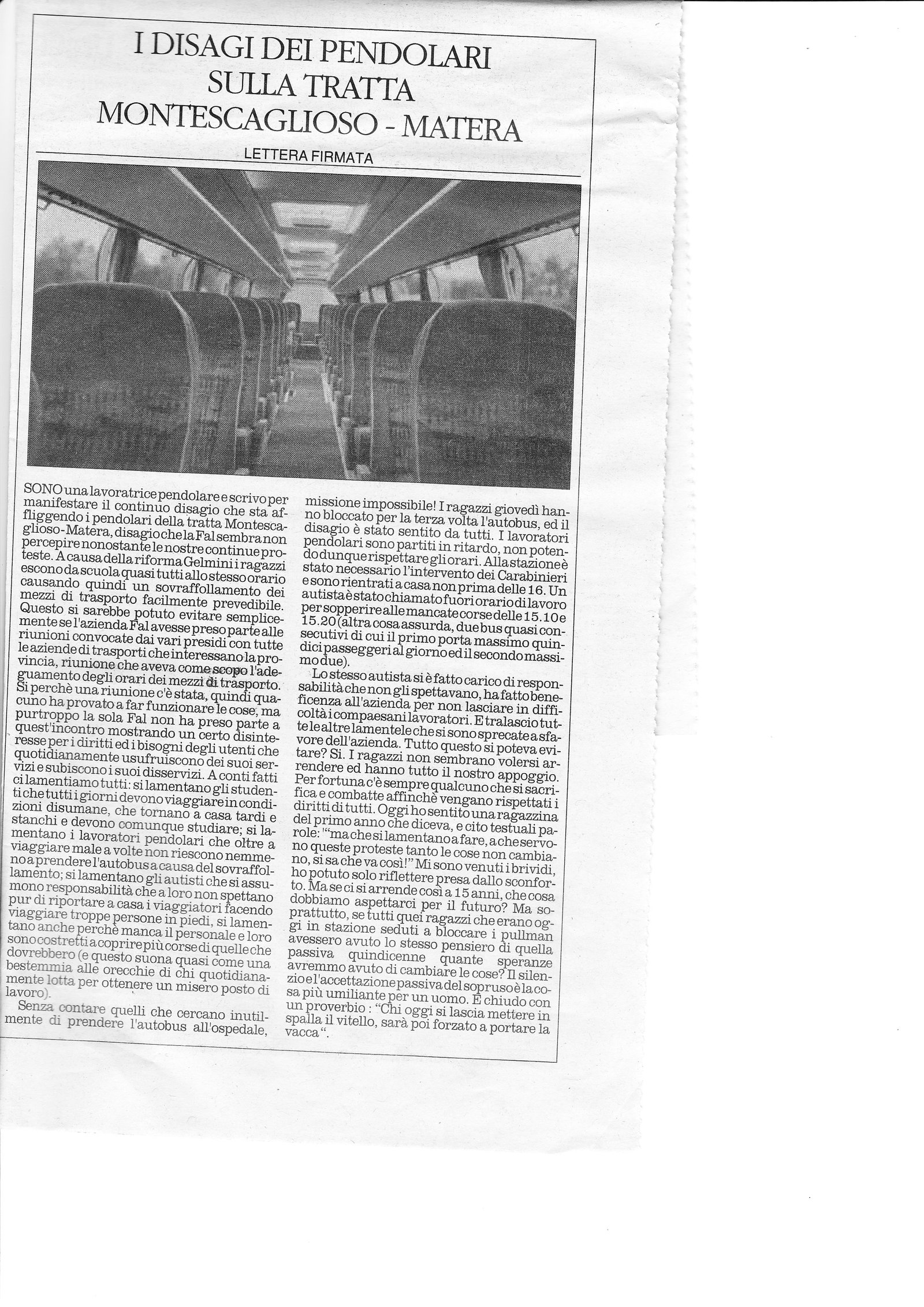 I disagi dei pendolari sulla tratta Montescaglioso – Matera