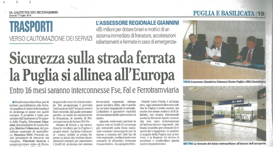 Fonte: Gazzetta del Mezzogiorno 17.07.2014